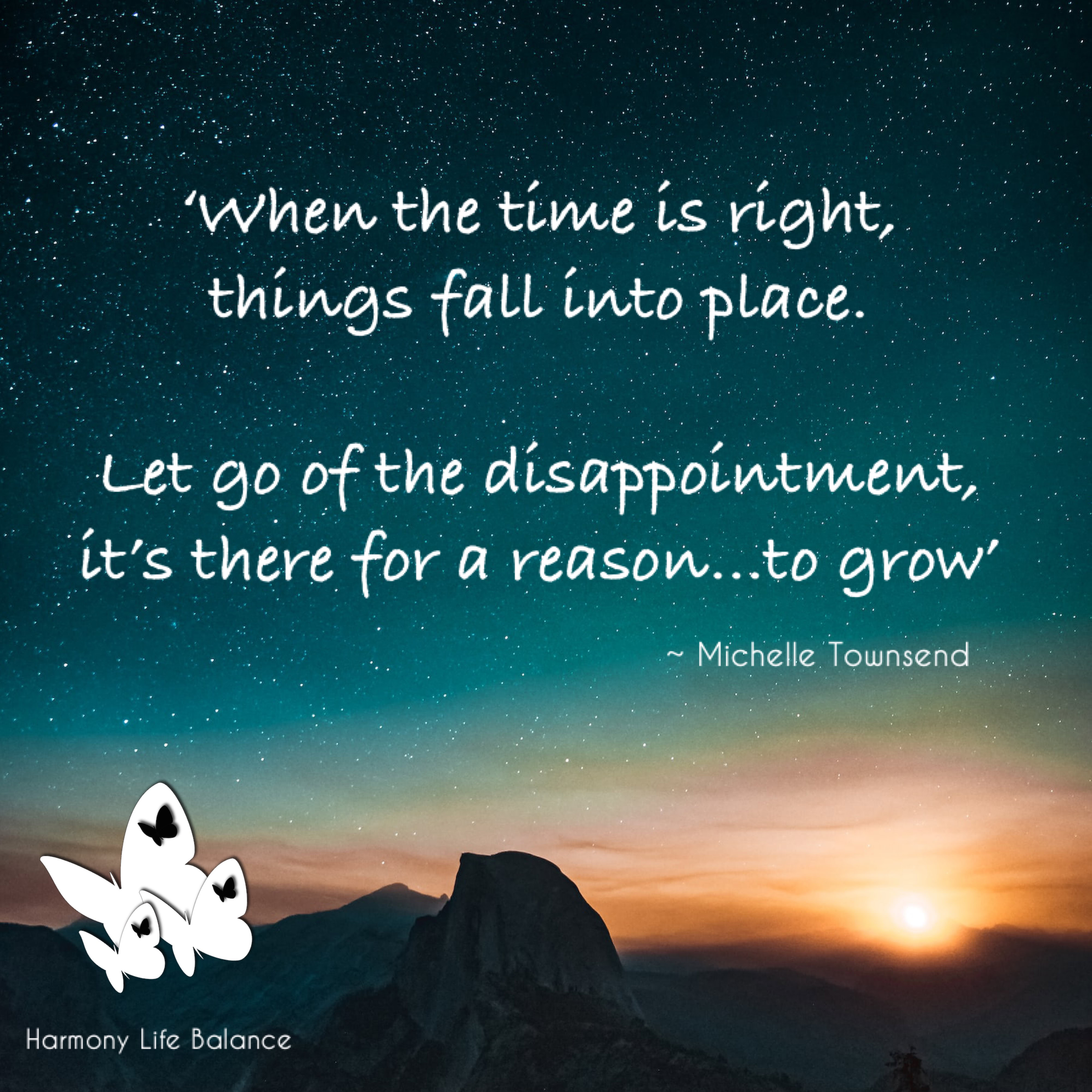 ‘When the time is right, things fall into place.  Let go of the disappointment, it’s there for a reason, to grow’.